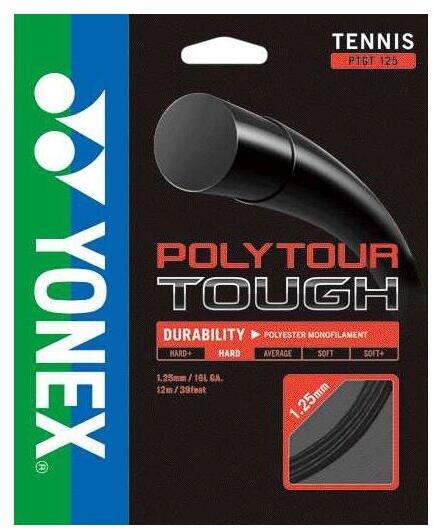 A Yonex POLY TOUR TOUGH teniszhúr remek választás azoknak a játékosoknak, akik erőteljes ütésekkel játszanak és a húrozásuk gyakran elszakad. A poliészter monoszál a spin, kontroll és tartósság tökéletes kombinációját kínálja. A prémium húrokkal összehasonlítva nem teljesít sokkal rosszabbul, így ez az egyik legjobb ár-érték arányú teniszhúr.